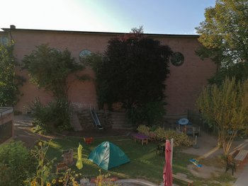 In der Kita werden täglich 75 Kinder (7-16.30 Uhr) von 2-6 Jahren betreut.