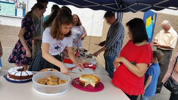 27.05.2018: Vor der Kirche St.Joseph mit selbstgemachten Leckereien: Kuchen und Crossies.