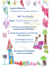 Die Kita St. Bonifaz bietet am 17.01.2026 ein Tag der offenen Tür an, um interessierte Eltern die Möglichkeit zu geben die Kita anzuschauen.